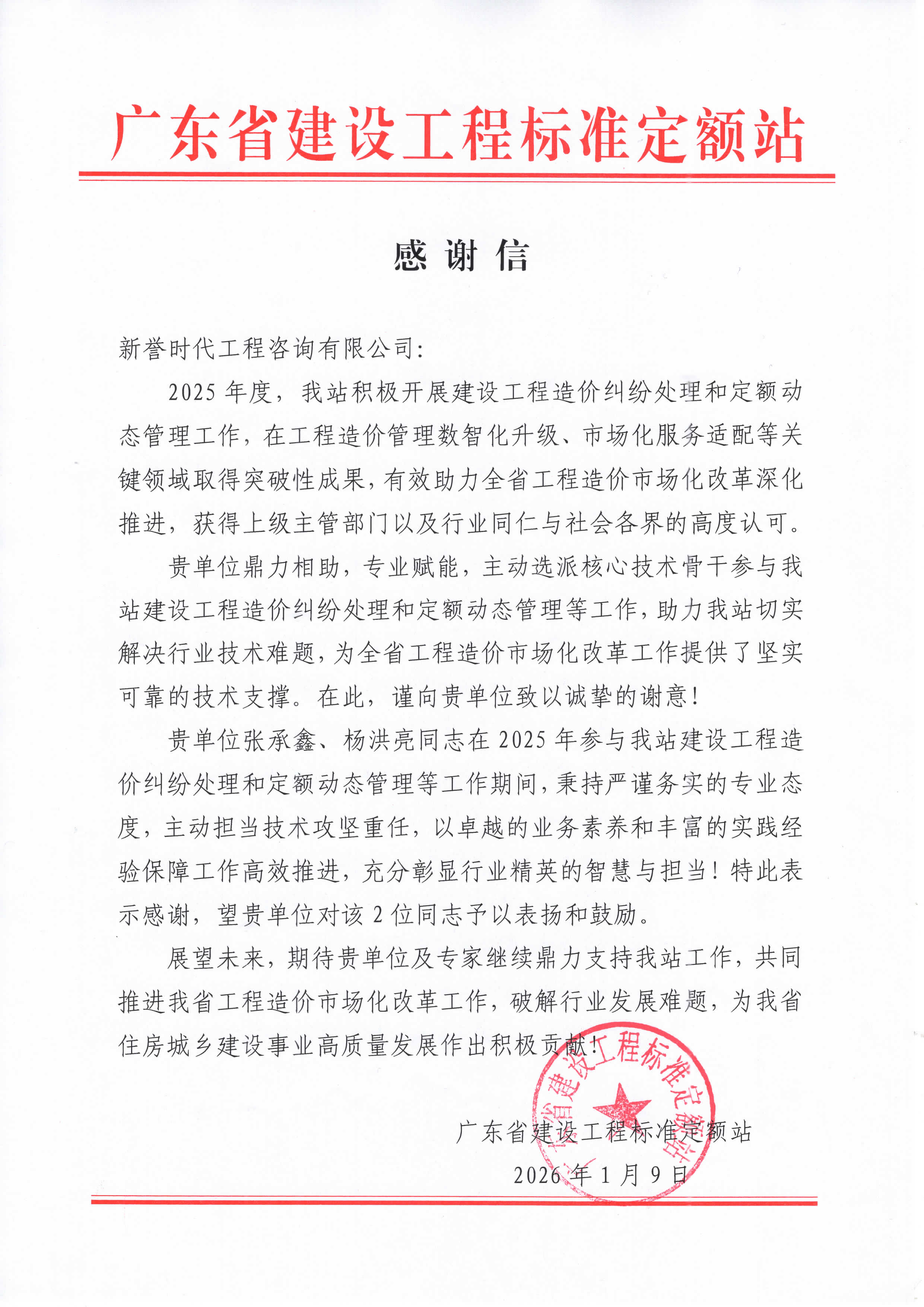 自2021年广东省建设工程造价纠纷处理与定额动态管理双系统上线运行以来,新誉时代资深造价专家连续6年入选双系统专家库,发挥专业技术优势,支持和参与工程纠纷处理与定额动态管理工作,高效解决行业难题、推动行业发展改革,多次荣获广东省建设工程标准定额站感谢和认可!