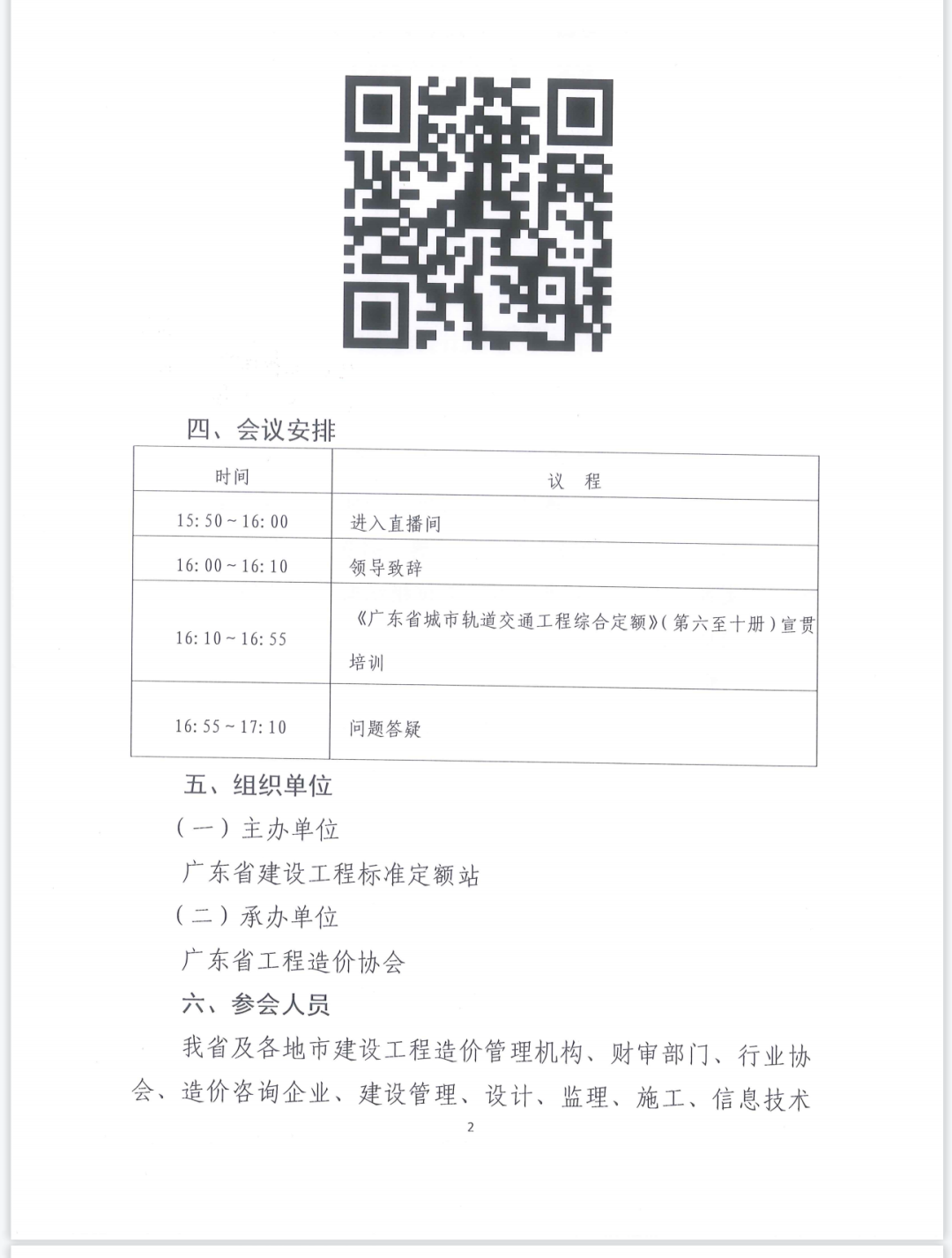 关于召开《广东省建设工程施工工期定额》《广东省城市轨道交通工程综合定额》(第六至十册)宣贯培训会议的通知