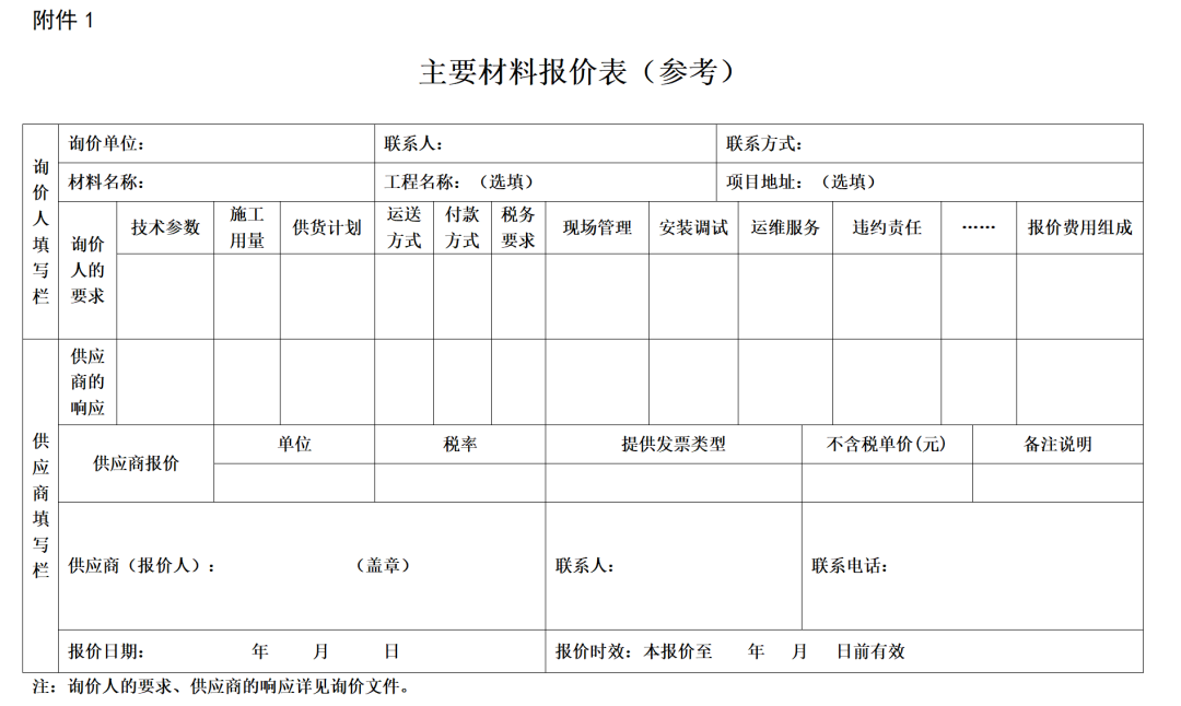 (三)询价人发出的包含主要材料基本信息、报价要求、报价格式等内容的询价文件;