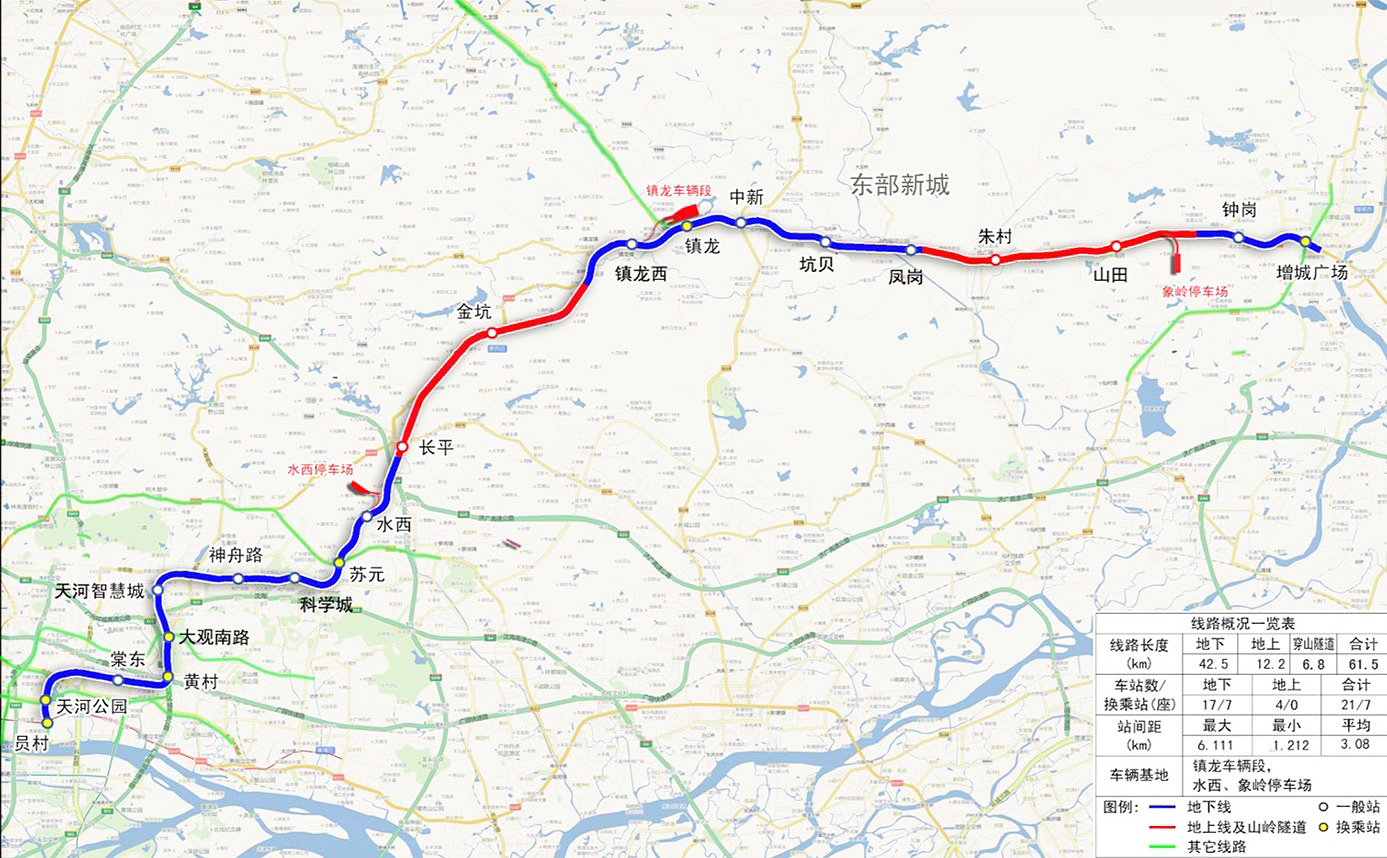 广州地铁二十一号线是广州地铁建成运营的第14条线路,自西向东贯穿天河区、黄埔区和增城区,西起天河区员村站,止于增城广场站,标志色为深蓝色。